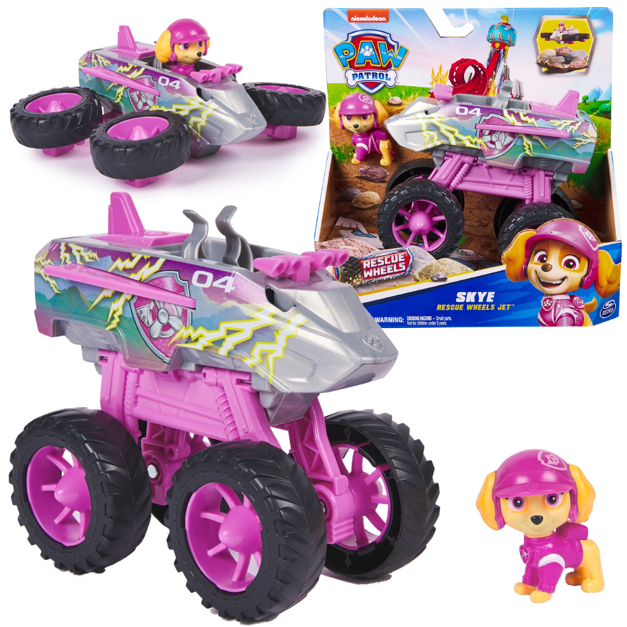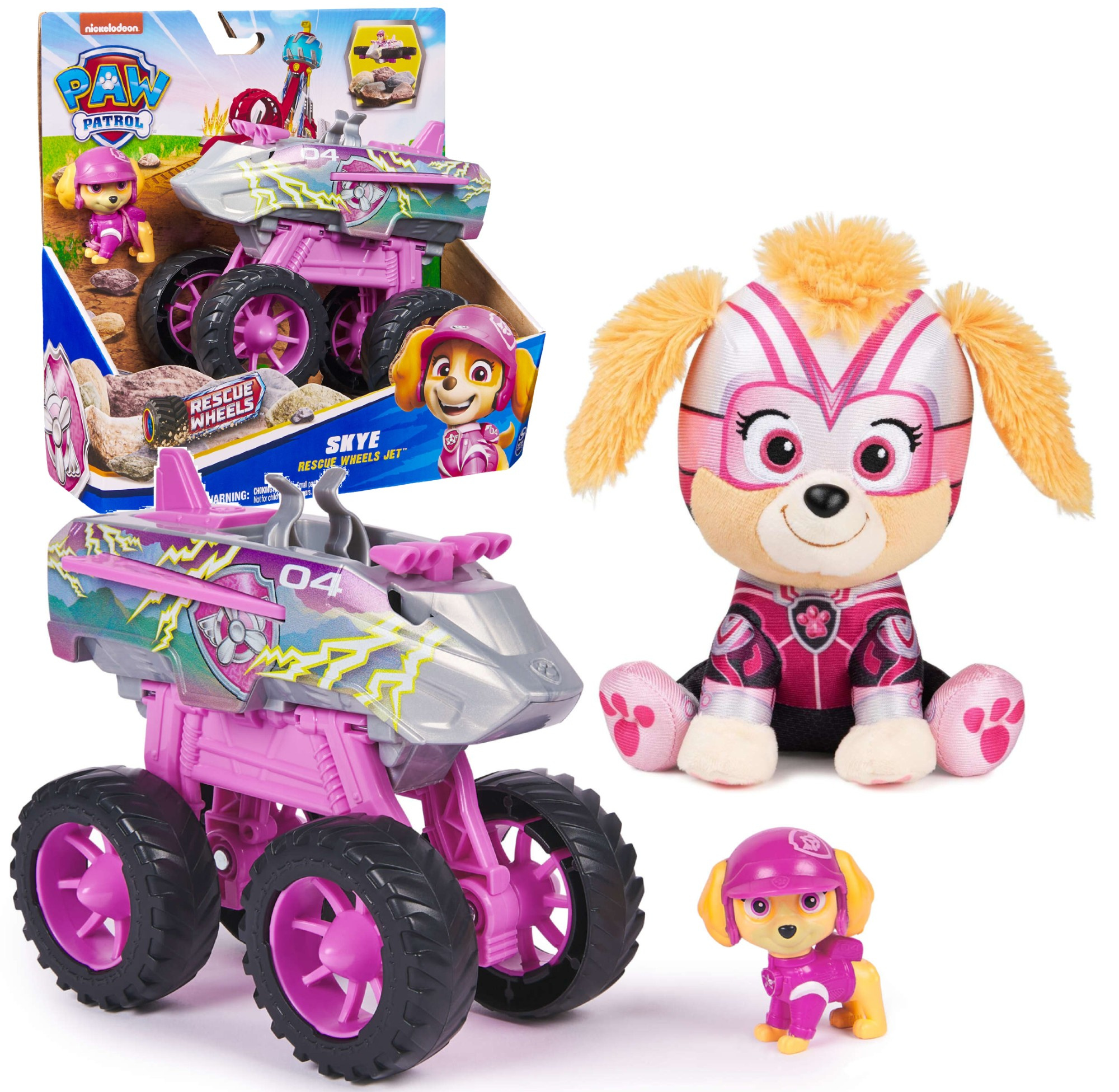 Zestaw Psi Patrol Skye pojazd odrzutowiec Rescue Wheels+ figurka i maskotka 15 cm