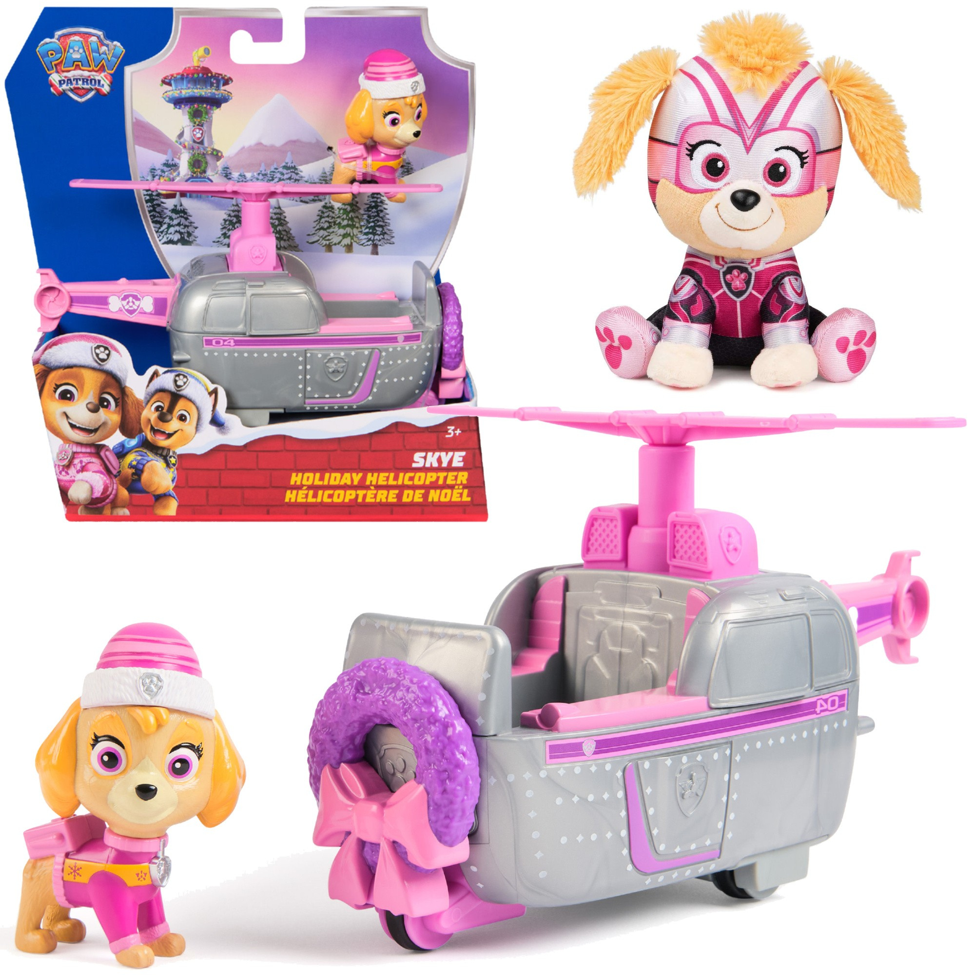Psi Patrol świąteczny Pojazd z figurką Skye Helikopter i Figurka + maskotka Skye 15 cm