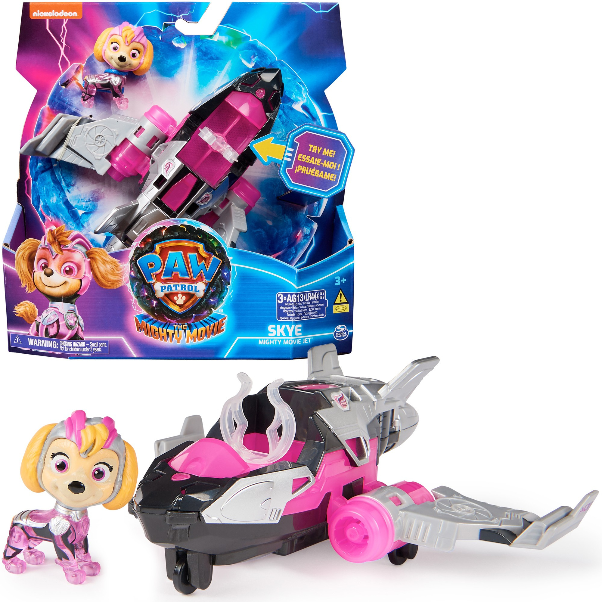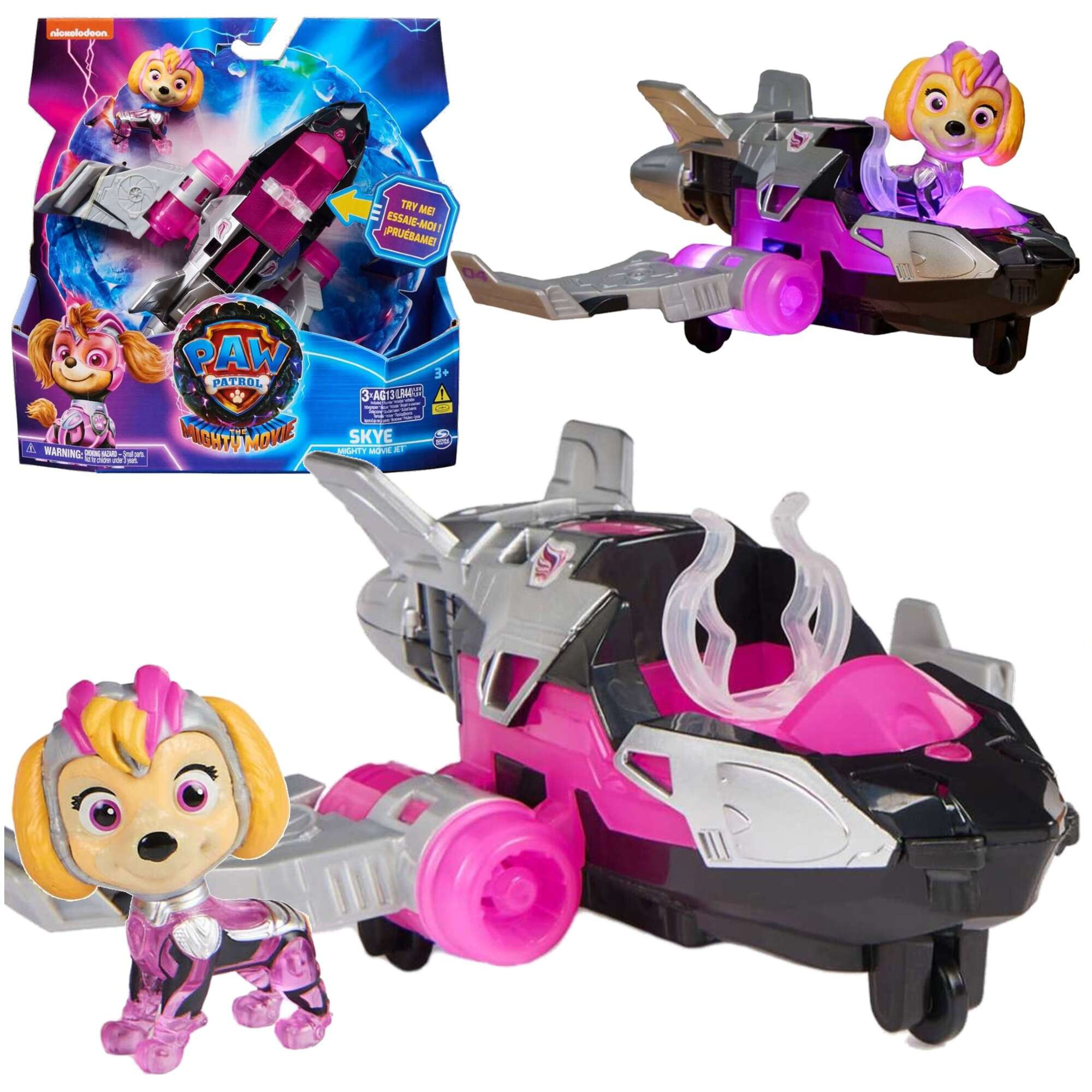 Psi Patrol The Mighty Movie Wielki Film Zestaw figurka Skye różowy odrzutowiec pojazd dźwięk światło + maskotka Skye 31 cm