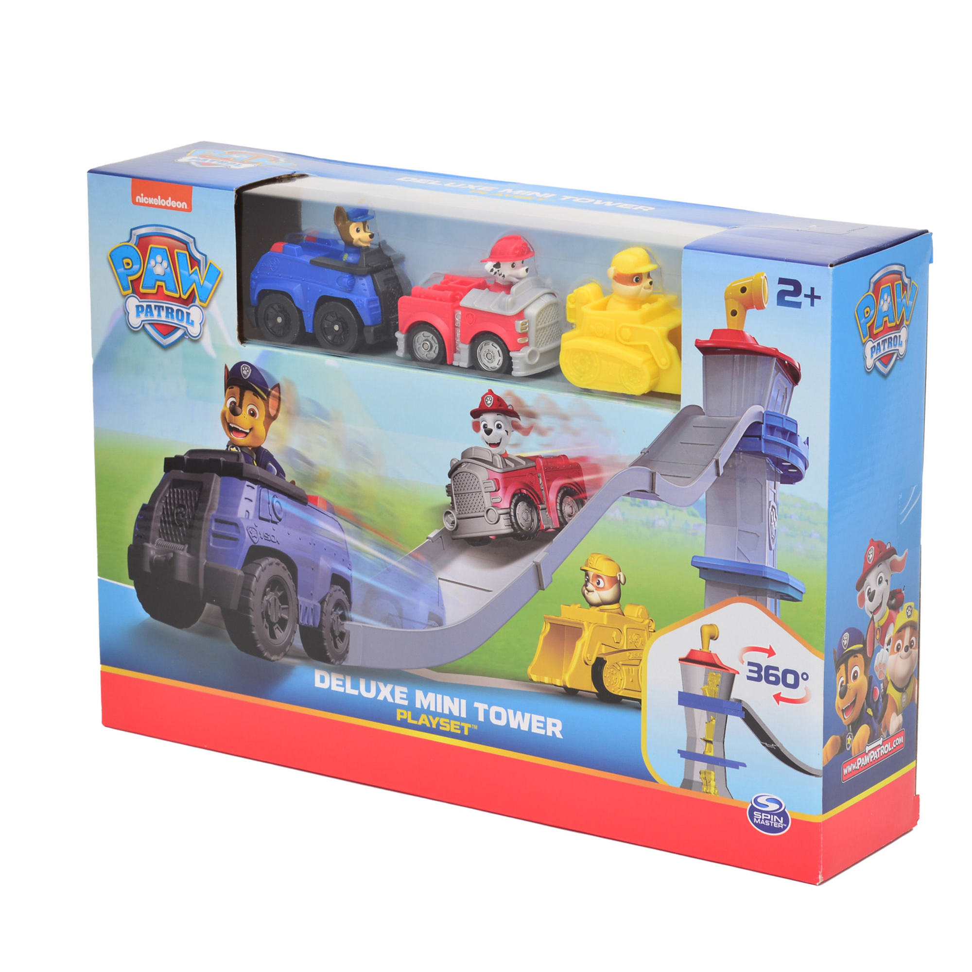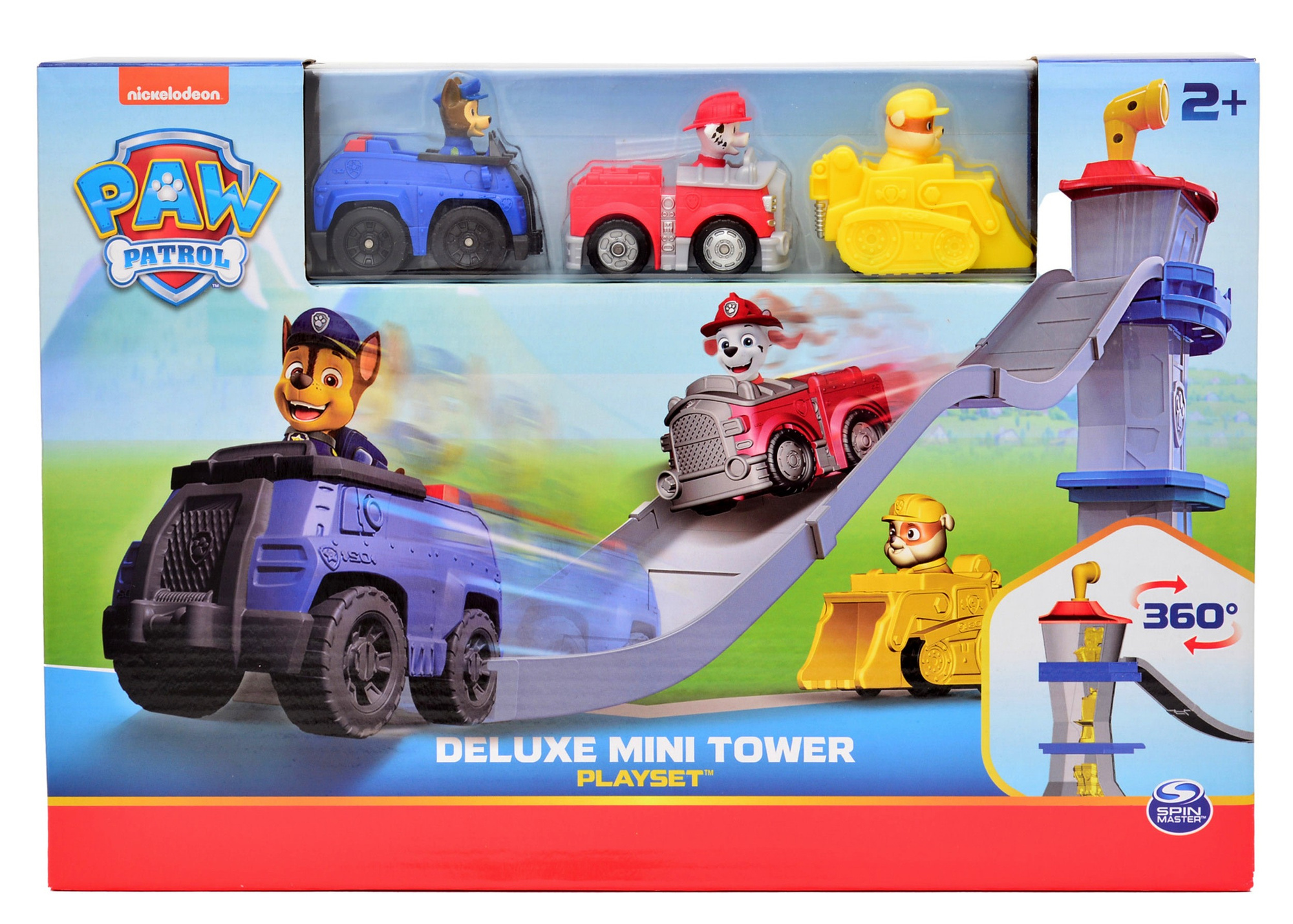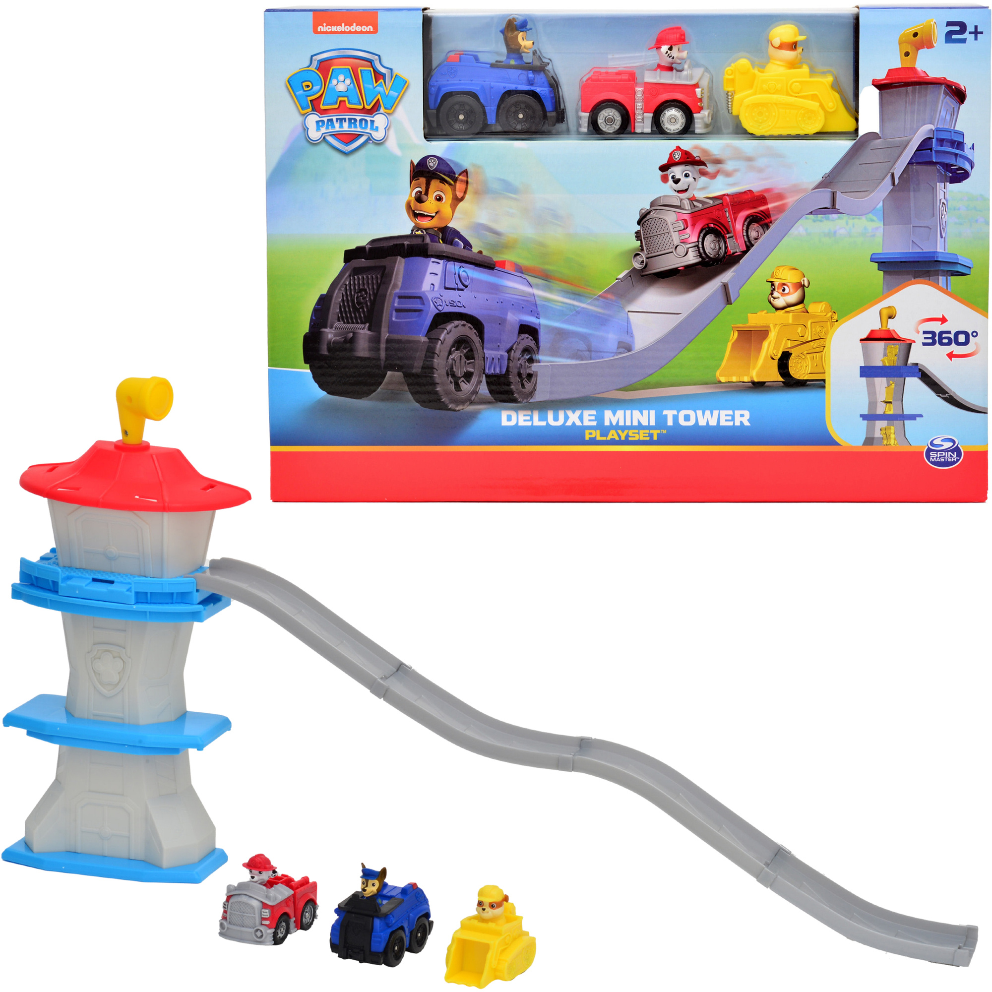 To propozycja pełna akcji dla małych fanów Psiego Patrolu, w której dzieci mogą wyruszać na emocjonujące misje ratunkowe. W skład zestawu wchodzą trzy pojazdy z pieskami (Chase, Marshall, Rubble), które są na stałe zamocowane w pojazdach, oraz wieża / baza piesków z torem, po którym można uruchamiać puszczać pojazdy do akcji.