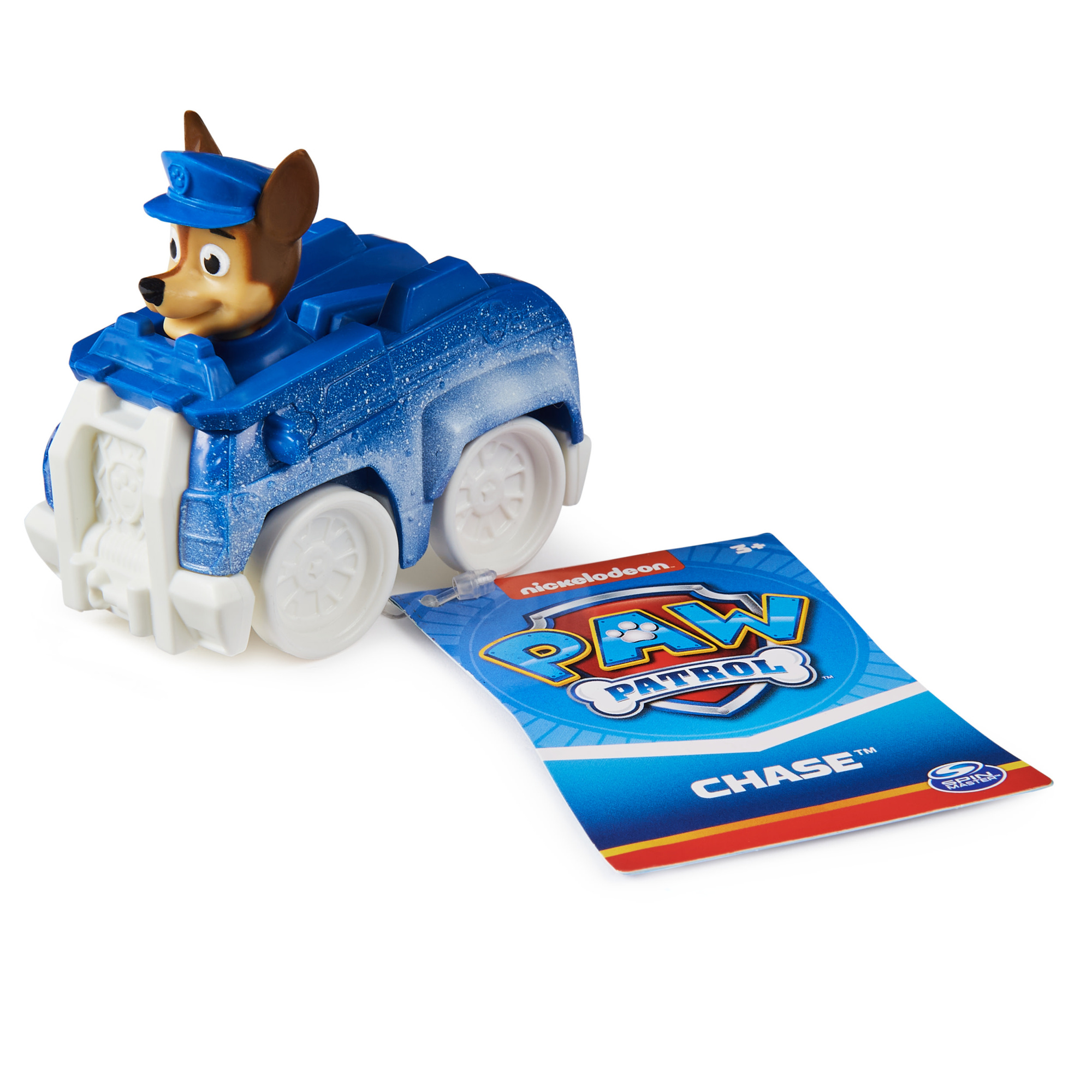 - Śnieżny radiowóz Chase’a to pojazd dla małych fanów Psiego Patrolu. Model przedstawia Chase’a w jego niebieskim pojeździe policyjnym, pokrytym białymi „śnieżnymi” detalami, które nadają zabawce zimowego charakteru i wprowadzają dodatkowy klimat do zabawy.