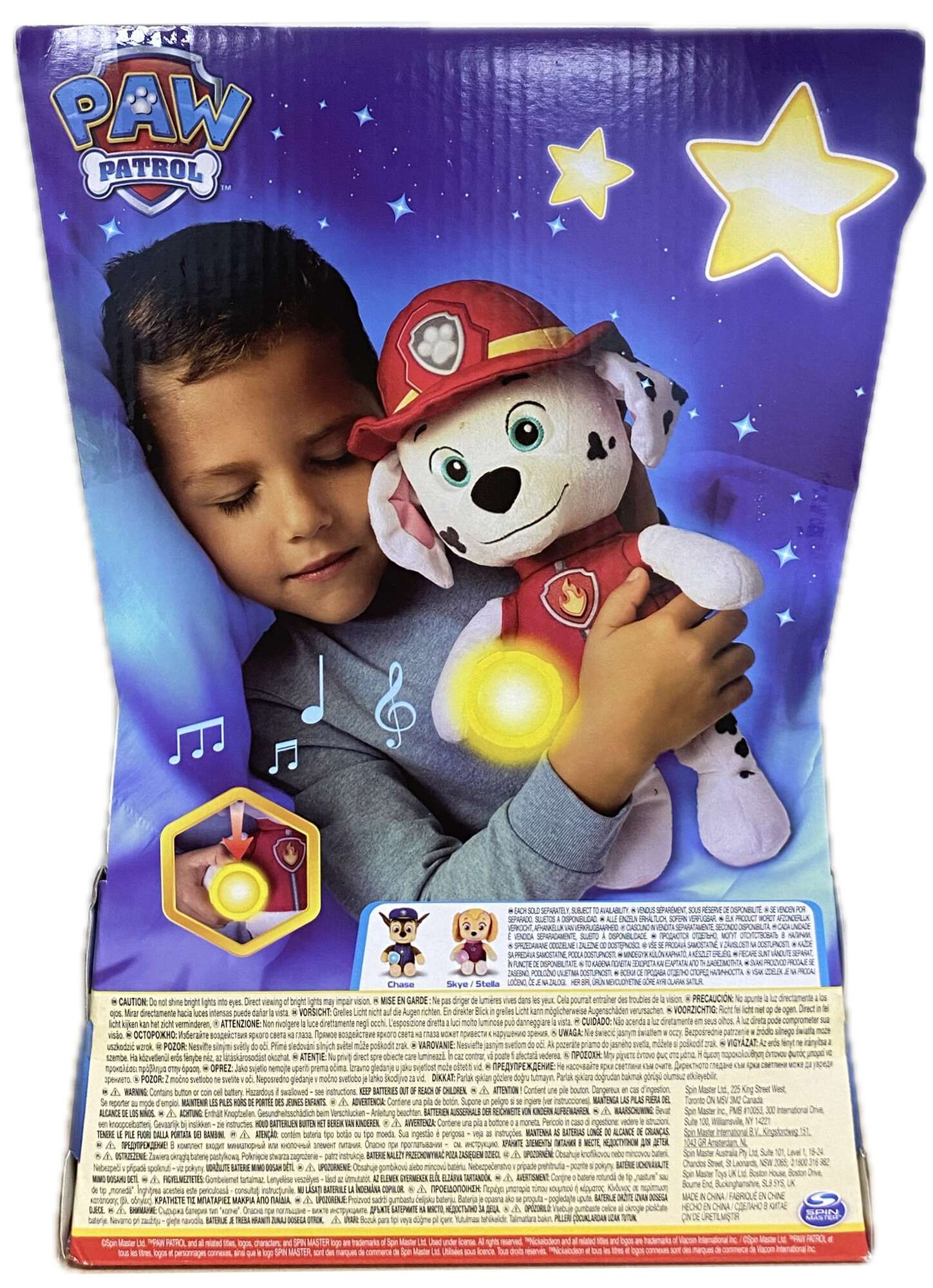 Marshall to uroczy dalmatyńczyk. W bajce jest strażakiem - jedną z najbardziej rozpoznawanych postaci. Pluszak ubrany jest w charakterystyczny czerwony strój (nie da się go zdjąć). Maskotka została wykonana z miękkiego pluszu i z pewnością przypadnie do gustu każdemu malcowi, który uwielbia Psi Patrol, a zwłaszcza przygody sympatycznego Marshalla. W łapie trzyma małą latarkę, która przy naciśnięciu przycisku z góry zaczyna świecić, grać spokojną melodię a na koniec życzy dobrej nocy po angielsku. Maskotka Marshall ma 32 cm wysokości.